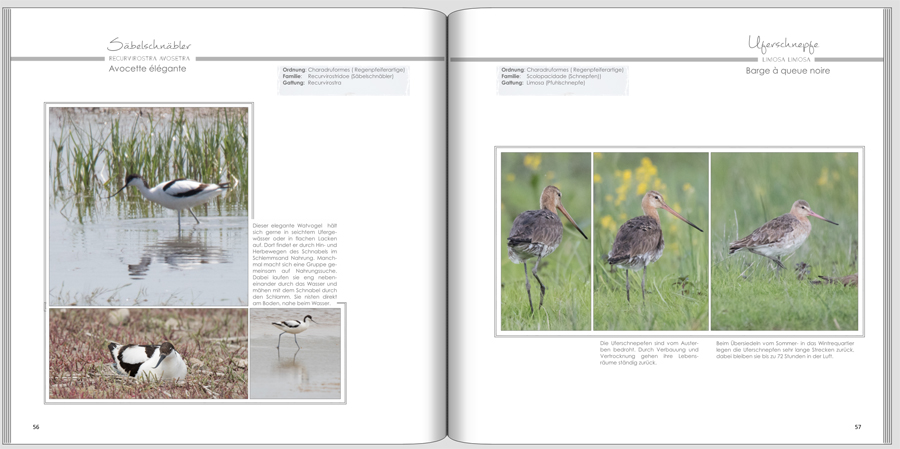 vielen, vielen Dank für eure Kommentare! Ich habe mal alles "aufgesaugt"; hier meine ersten Gedanken dazu: Ich habe überhaupt nicht damit gerechnet, dass alt eher mehr Anklang findet als neu. Bei mir war der Gedanke "wenn ich es schon überarbeite, dann soll es auch ein anderes Layout werden" und dieser Gedanke verstellt mir vielleicht ein bisschen die Sicht. Jedenfalls danke für die Hinweise auf die "Gestaltung als Selbstzweck" ("l'art pour l'art"). Dieses Feedback habe ich gelegentlich auch schon früher bekommen, aber ich kann es nicht lassen. Ein paar "Verzierungen" werden bei der weiteren Überarbeitung aber sicher auf der Strecke bleiben. Das Netz als Rahmen durch eine einfärbige, helle Fläche ersetzen? Da stimme ich rational sofort zu - emotional bin ich dem Netz wegen der Stunden, die ich mit dem Herstellen verbracht habe, noch zu sehr verbunden. Mal sehen, wie es in ein paar Wochen ausschaut. Die Rauten werden es wahrscheinlich nicht in die finale Version schaffen. Zudem ist es ja wirklich so, dass gegenständliche Motive nicht in Rauten passt. Bilder passen farblich, strukturell nicht zusammen: An dem kiefle ich schon seit einiger Zeit. Die Uferschnepfe ist da eh noch von der besseren Sorte. Je weniger Bilder pro Seite, ums so wichtiger ist die Stimmigkeit der Bilder; Leider habe ich in meinem Fundus nicht so viel Passendes vorrätig. Wahrscheinlich ist es dann besser zu kürzen. Ist es ein Reisebericht oder eine Fotosammlung: Es war mal ein Reisebericht. Das berichtartige schleicht sich grad durch die Hintertüre raus. Vielleicht kürze ich den Inhalt noch weiter und mache einen Bildband als Ergänzung (und nicht als Ersatz) zum bestehenden Buch. Die Fotos mit Personen kommen dann auch raus und ich könnte es somit auch als Kundenbuch veröffentlichen. Ich mach mich jetzt einmal an die "Weihnachtspflichten" und dann schaue ich noch einmal - mit Abstand - was ich mit der neuen Version endgültig mache. Jedenfalls noch einmal vielen Dank für all eure Gedanken! Das hat mir wirklich sehr geholfen - mehr als ich erhofft habe! Danke - danke - danke. Ich melde mich wieder, wenn ich weitermache. Re: Überarbeitung eines Fotobuchsgrasmuecke hat geschrieben: ....mache einen Bildband als Ergänzung (und nicht als Ersatz) zum bestehenden Buch... Exzellente Idee! Genau das sollst du machen! LG Old Nat, der Dino
