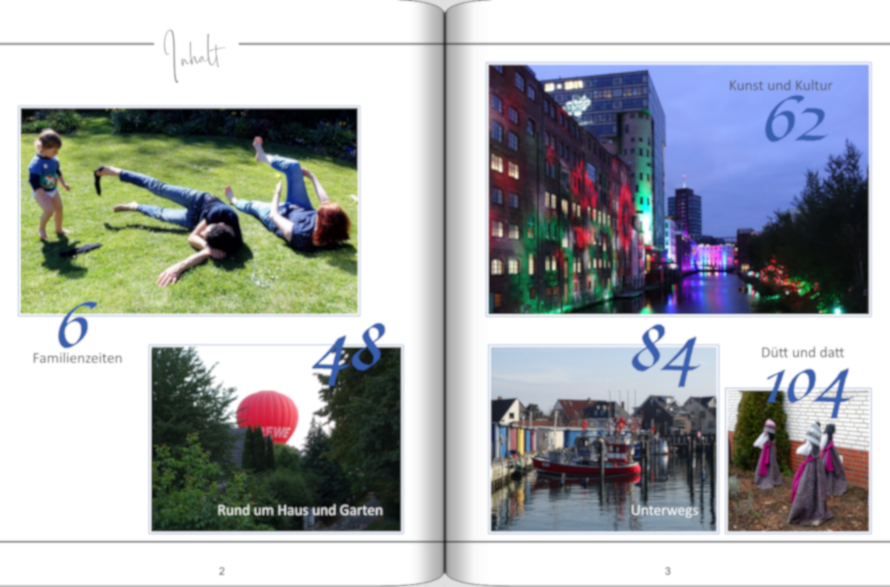 Unsere "Familienzeiten" waren im vergangenen Jahr sehr bunt gemischt, eingeführte Rituale, Spaziergänge, Familienfeiern in kleinem und größerem Rahmen bis hin zu gemeinsamen Urlauben. Das heißt, dass schon in diesem Teil ausreichend Abwechslung vorhanden ist. wird es langweiliger als wenn sie übers Jahr verteilt werden und sich mit Spaziergängen, Ausflügen, Veranstaltungen, Stadtbesichtigungen etc. abwechseln. Ich bin jetzt selbst gespannt auf das fertige Buch, das in ein wenigen Tagen fertig sein soll. Re: Jahrbuch - thematisch geordnetTraumfänger hat geschrieben: