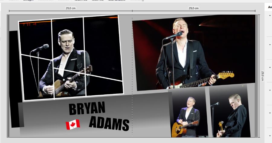 Ich habe unzählige Konzertfotos, die ich gerne in ein oder zwei Bücher packen möchte. Ausgewählt hab ich XL mit Layflat. ich habe eine grobe idee, die ich mal kurz ausprobiert habe, aber ich bin mir nicht ganz sicher wie ich es aufbauen soll. inhaltsverzeichnis ja oder nein? jetzt hab ich erst mal auf die erste seite kunterbunt die versch. Künstler gepackt. (Auswahl) Dann dachte ich mir als Leitfaden immer vier Cover ( sofern es soviele gibt) mit Name, Als Lückenfüller fotografiere ich noch die Eintritts Karten als Collage ab, für die linke Seite. Die Besten Fotos Chronologisch, mit Datum und Ort, auf den darauffolgenden Seiten, und die Künstler evlt nach Alphabet oder tatsächlich auch chronologisch ? Ich gebe den Entwurf noch dazu, vielleicht hat ja jemand noch ne gute idee. Die Gestaltung werde ich pro Dopplseite mit gleichen Hintergund machen, vielleicht auch durch das ganze Buch hindurch ( fHintergrund) bin mir noch nicht ganz sicher, aber schon mit masken und Farbe. Bin leider nicht ganz so kreativ wäre dankbar um Ratschläge vielleicht werde ich ja dann doch noch kreativ!! danke schon mal , Christine