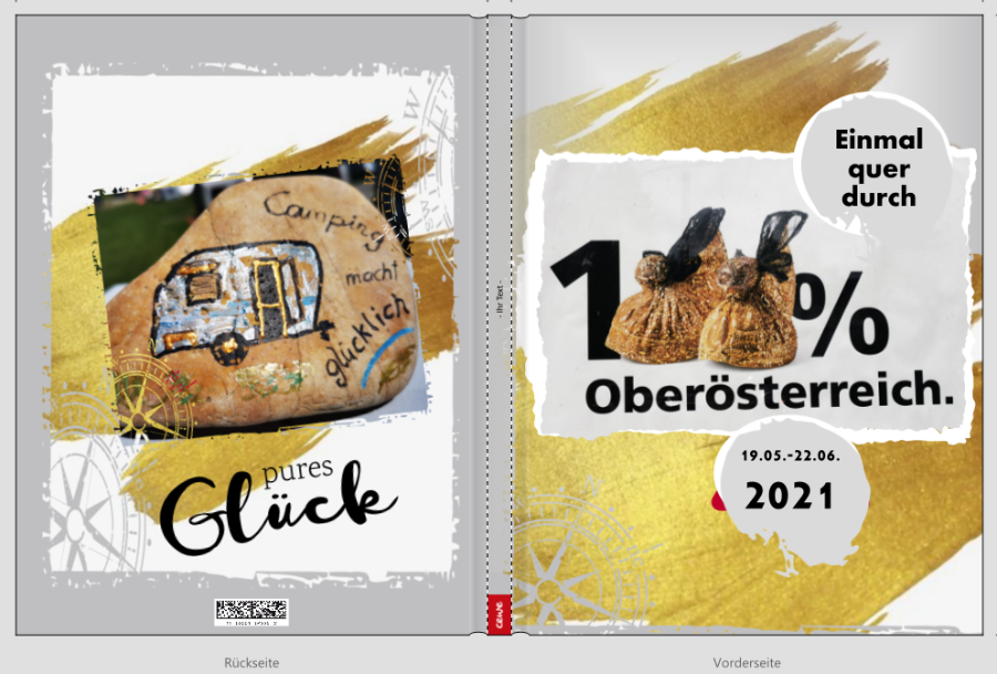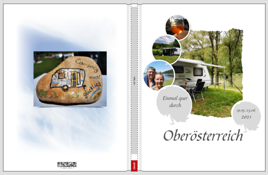 Der Anfang eines Buches ist immer schwer. Schön, dass du uns um Rat fragst, das gibt immer eine andere Sichtweise, egal ob du es annimmst oder nicht. Ich gebe Narzisse recht, es ist wohl etwas viel und doch zu wenig Österreich. Die Rückseite ist witzig, aber zu viel "Glück". Die Aufschrift auf dem Stein sagt doch schon alles, wozu dann nochmal der untere Schriftzug. Mir sind es auch zu viele Masken und Cliparts noch Rahmen usw.. Ich weiß nicht, wohion ich schauen soll. Ist das Foto vom Stein so? Der Stein erscheint mir vorne abgeschnitten, vielleicht gibt das original ja noch mehr her. Der gelbe Hintergrund passt für mich nicht so ganz zum Stein. Die Vorderseite: Da habe ich auch überlegt, was die beiden goldenen Dinger sind ich kann es nicht erkennen. Ich würde bei einem Spruch bleiben, entweder "einmal quer durch Oberösterreich" oder "100 % Oberösterreich". So klingt es wie "einmal quer durch 100 % Oberösterreich" und das passt nicht so ganz. Für mich fehlt da ganz viel Österreich - weder ein typisches Foto noch die Farbe, die zum Land passt, das könnte ja überall sein. Warum nicht ein schönes Foto der Donau oder eine Stadtansicht von Linz? Oder auch euer Camper in der Landschaft, wenn es ein Campingurlaub war. Was mir außerdem auffällt, ist der kleine rote Fleck hinter dem Datum. Könnte natürlich auch ein Warnzeichen von Cewe sein, dann sieht man es ja später nicht. So, dann bin ich mal gespannt, was am Ende daraus wird. Liebe grüße Monika