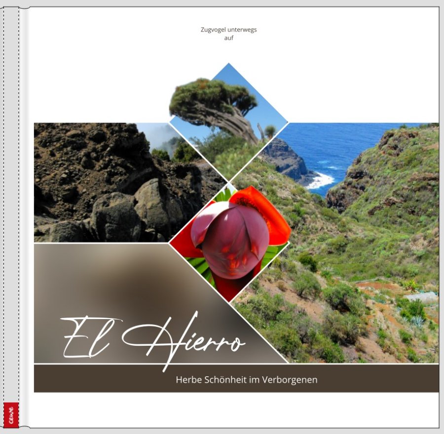 Cover El HierroHallo, nach einer urlaubsbedingten Pause geht es weiter mit meiner Buchgestaltung El Hierro. Die Insel ist klein, aber sehr vielfältig, schroff, karg, vulkanisch auf der einen Seite, grün mit Nebelwald auf der anderen Seite. Ich möchte gern diesen Kontrast auf dem Cover unterbringen. Ist das Rot des Weihnachtsstern vielleicht zu knallig?