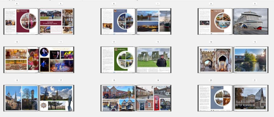 Ich habe jetzt noch mal meine Problemseite bearbeitet. Dieses kleine Mönchlein wollte ich unbedingt mit drinen haben. Hab nun auf der Einleitungsseite Fotos im Kreis ausgetauscht und anders angeordnet, so dass nun hier das Mönchlein zu sehen ist. Irgendwo muss man halt Abstriche machen. Ich wüsste auch gar nicht, wo ich das FB teilen sollte. Wegen dem Clipart gebe ich dir recht. Ich weiß noch nicht, was besser aussieht 10 cm wie bei dem ersten Beispiel S.26 oder jetzt abgeändert in 10,5 cm. Da bin ich noch am Überlegen. Das Cover habe ich zwar vorallem auch wegen der Schrift eingestellt.Ich hab das Foto jetzt getauscht. Bin mir aber noch nicht sicher, ob es das Richtige wäre. Die Seite mit der Route erscheint zwar auch auf der Seite 1, aber eben kleiner weil ich da viel Text dazu geschrieben habe. Liebe Grüße Asiafan