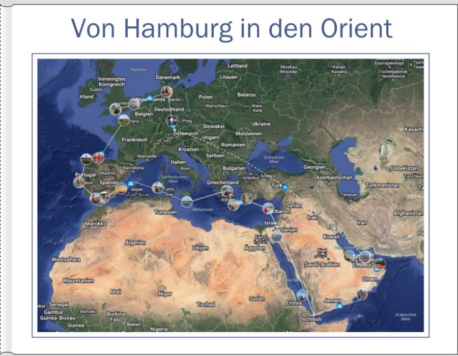 Re: Neues Projekt: Kreuzfahrt von Hamburg in den OrientWegen des Cliparts um den Kreis: Ich würde es vermutlich bis zum Beginn der beiden rechten Fotos ziehen. Aber nur dann, wenn der längste Ortsname im Clipart Platz hat.
