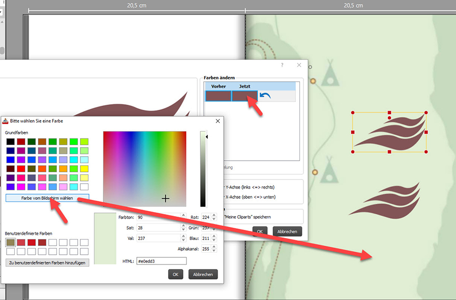 MissVette Re: Hintergrundfarbe vs ClipartDu setzt zuerst den Hintergrund. Darauf das Clipart, dann klickst du auf das Clipart und gehst auf Farbe ändern,. Dort wählst du Bildschirmfarbe und klickst auf den Hintergrund. Dies ist einer der Features, die ich etwas versteckt fand. Hier ist das Bild dazu: