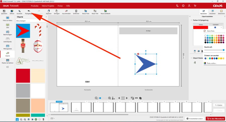 Ich habe es eben nochmals ausprobiert. Bei mir funktioniert das mit dem Rückgängig so nicht. Ich muss sämtliche Farben zurückklicken, die meine Maus aufgenommen hat. Ich muss allerdings dazusagen, dass ich noch eine alte Version verwende, da ich immer erst einmal abwarten möchte mit dem Updaten (aus Gründen LG Hans-Jürgen Unbenannt-1.jpg Liebe Grüße