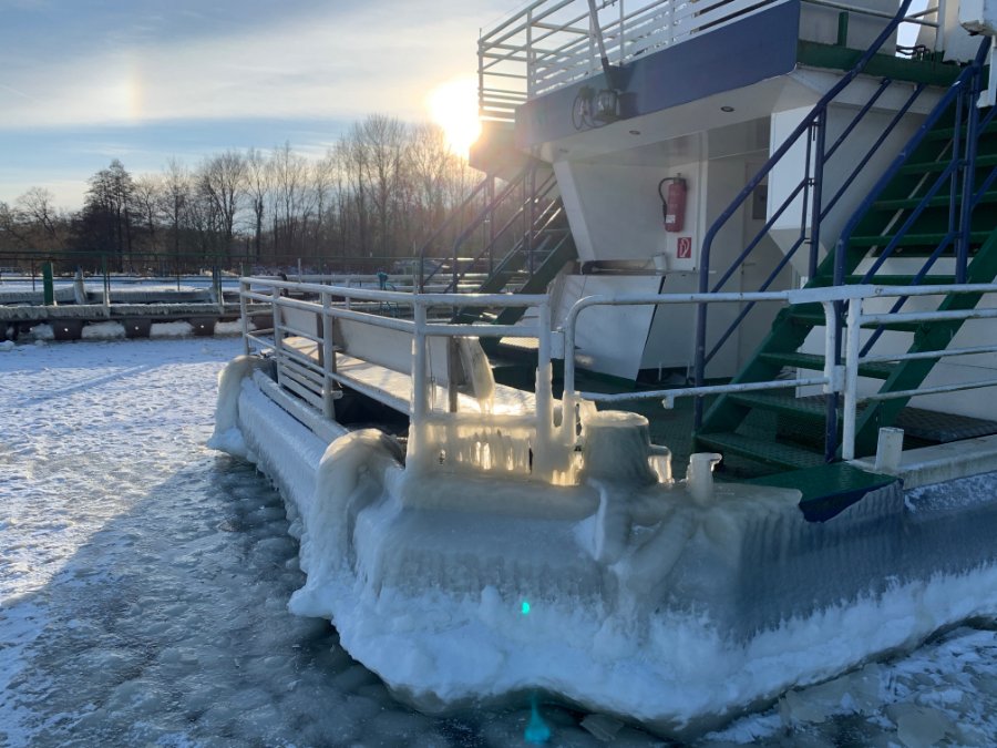 Das zugefrorene Rundfahrtsschiff auf dem Zwischenahner Meer.
