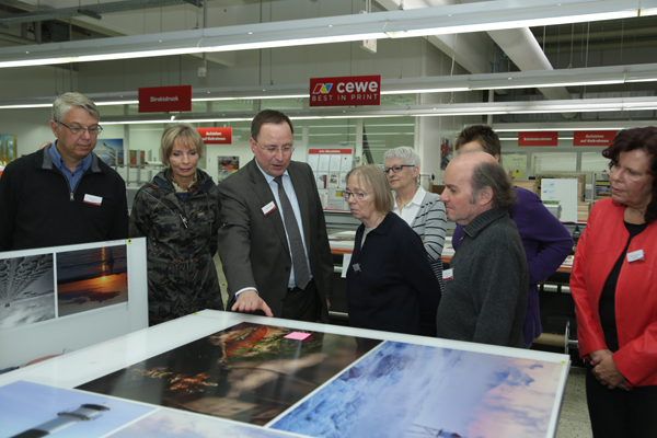 Mit einigen Fragen im Gepäck bekam unser CEWE COLOR Betrieb in Oldenburg am 19.9.2013 Besuch von unseren Foren Gurus. Sieben unserer Gurus folgten unserer Einladung zu einem näheren Einblick in die Produktion. Doch nicht nur eine Betriebsbesichtigung stand auf dem Programm sondern auch einige spannende Vorträge über Produktneuheiten, Softwareneuerungen und natürlich die Möglichkeit offen zu diskutieren. Begonnen hatte Dr. Reiner Fageth mit einer Präsensation über die Entwicklung unserer Handelswege - wie kommt eine Bestellung zu cewe (über den Handelspartner oder online) und welche Veränderrungen hat es mit der Zeit gegeben? Zur Mittagszeit dürfte eine Stärkung natürlich nicht fehlen und so konnten Besucher und Mitarbeiter bei einer warmen, indischen Suppe und vielen köstlichen Kleinigkeiten die ersten Eindrücke auf sich wirken lassen. Neuerrungen innerhalb der Software wurden anschließend von Sabine, Softwareentwicklung, vorgeführt. Dazu gehörten unter anderem die neue Papierkorbfunktion oder auch die Favoritenbestimmung, mit Hilfe der man lieblings Hintergründe oder Cliparts nun schneller wiederfinden kann. Abschließend präsentierte Rene Funktionen und Möglichkeiten unserer CEWE Apps, die Skeptiker sogar austesten konnten. Neben der Möglichkeit CEWE FOTOBÜCHER schnell und einfach auf dem Tablett zu erstellen, wurde jedoch auch die Bestellung und der Versand von Postkarten während des Urlaubs erklärt. Liebe Grüße