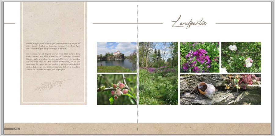 Re: Gewinnspiel: Mein Jahr!Schon seit vielen Jahren gestalte ich für jedes vergangene Jahr ein Jahrbuch. Da die Ereignisse variieren, sich mein Geschmack verändert, meine Kenntnisse sich weiterentwickeln und die Cewe-Software immer mehr Möglichkeiten bietet, sehen meine Bücher immer unterschiedlich aus. Für 2019 habe ich zum ersten Mal keine rein chronologische Vorgehensweise gewählt, sondern themenbezogene Kapitel gestaltet.