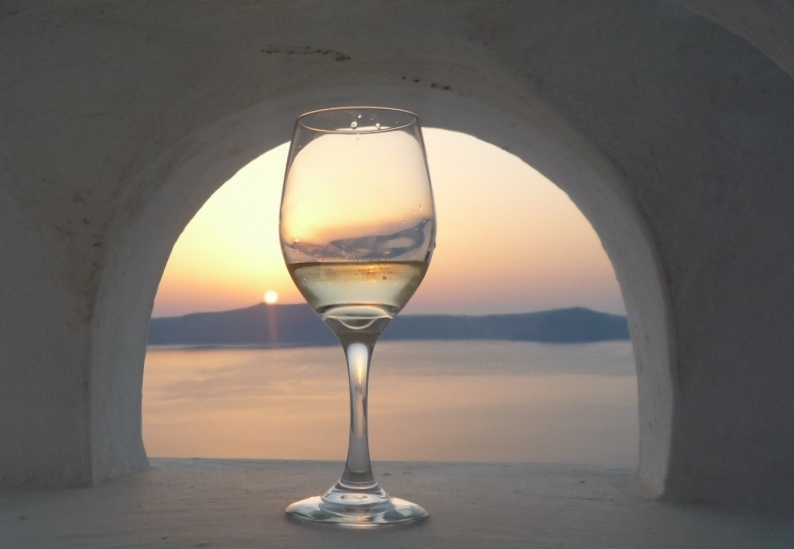 Silber-Distel Re: Challenge 01/2017 • Sonne, Mond und SterneSonnenuntergang in Santorin bei einem Glaserl Wein.
