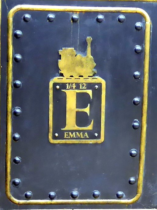 Das Schild gehört zur Lok "Emma" im Filmpark Babelsberg.