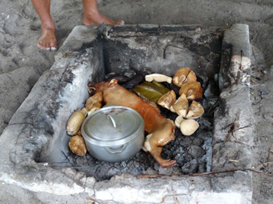 Re: Challenge 08/2014 • AufgetischtEin typisch zubereitetes Essen in einem Erdofen auf Bora Bora.