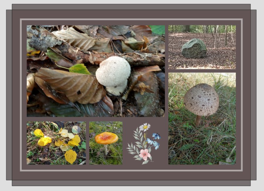 Bei der Gestaltung schwebt mir eine Collage mit 5 Bildern, einer Clipart und einem halbtransparenten Rahmen vor. Nicht wundern, dass die Clipart "Blumenwiese - #890355" nicht so recht zu den herbstlichen Fotos passt. Da es alles Personenfotos sind, habe ich die Fotos für diesen Beitrag kurzerhand ausgetauscht. Mir geht es vor allem um die Clipart selbst und um den halbtransparenten Rahmen (Farbe weiß, Alpha-Kanal 125, Breite 5 mm). Anders als beim Posterdruck hat ja eine Leinwand eine gewisse Struktur. Meine Sorge ist, dass sich das beim Druck negativ auswirken - und nachher nicht so gut aussieht. (Ich hoffe, dass ich mich einigermaßen verständlich ausgedrückt habe) Hat jemand mit einer solchen Gestaltung Erfahrung? Die Leinwand selbst hat die Maße 70 x 50 cm, das Clipart (#890355) ist 10,2 x 12,3 cm groß. Mit dem Hintergrund (#6015), er wird mir "passend zu meinen Fotos" angezeigt, hadere ich noch. Ich finde aber, dass ein dunkler Hintergrund meine Fotos besser zur Geltung bringt als ein heller Hintergrund … Liebe Grüße