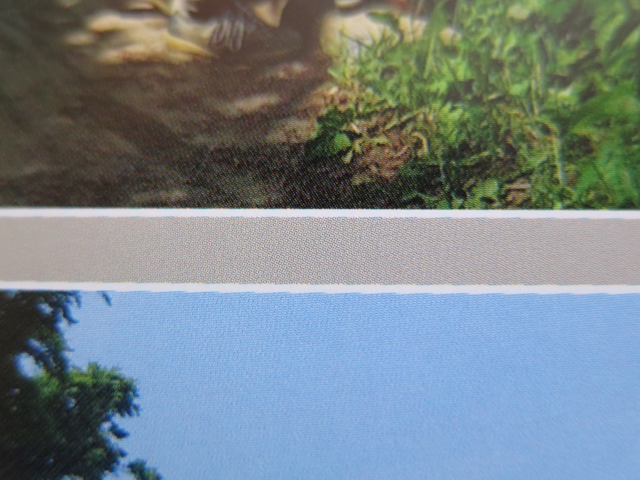 die gezackten Ränder habe ich auch in den (meisten) Fotobüchern. Je nach Buchformat bzw. -größe laufen sie entweder waagerecht oder senkrecht. Sie treten bei hellen Farben stärker auf als bei dunklen und bei einfarbigen Flächen stärker als bei bunten. Das hat wohl drucktechnische Gründe und scheint nicht zu ändern zu sein. liebe Grüße