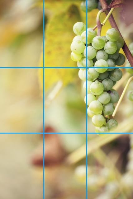 Re: Spannende Fotos dank der drittel RegelFür die Drittel-Regel ist es aber wichtig, dass der Hintergrund "weichgezeichnet" wirkt. Und die kleinen Kameras haben ja oft keine Möglichkeit, aus dem Automatik-Programm auszusteigen und Blende etc manuell vorzugeben. Wenn jetzt die schöne fette Weintraube aus dem Beispiel rechts hängst und der Hintergrund trotzdem erkennbar ist, dann ist die Stimmung des Fotos ziemlich hinüber und eine mittige Traube würde dann besser wirken.