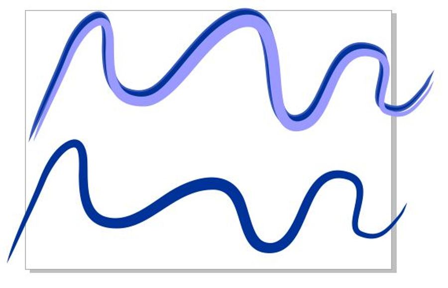 Corel bietet auch die Möglichkeit, kalligrafische Linien zu erstellen. Das finde ich für die Abbildung eines Fluss- oder Bachlaufs noch passender, da diese meistens unterschiedlich breit sind (Gleit- und Prallhang).
