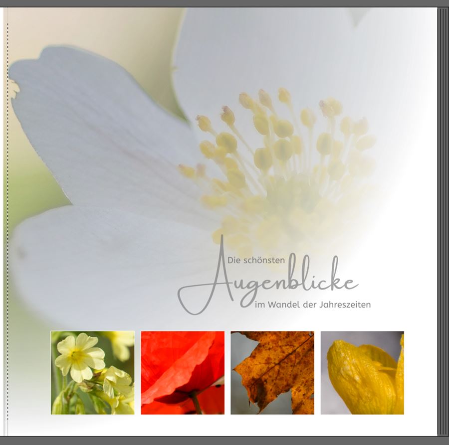 Wie pitty schon sagte: Dir muss es gefallen. Kannst du dir mit der Entscheidung noch Zeit lassen? Ein bisschen Abstand hilf manchmalRe: Eure Meinung zum Cover und erste SeiteIch hab' jetzt noch versucht, die Farbharmonien der Einzelbilder zu verbessern. Nur beim Winterbild finde ich keines, das einigermaßen dazu passt. Aber so gefällt mir die erste Innenseite sehr gut.