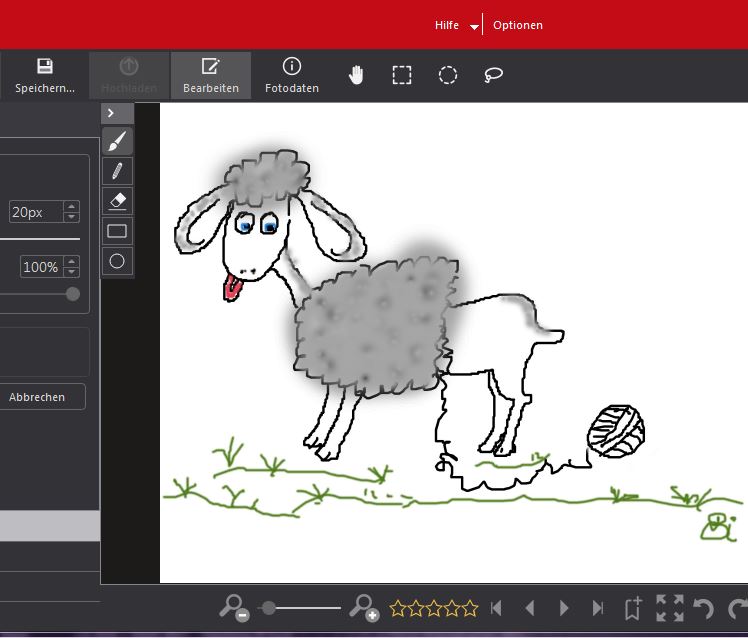 Zeichnen geht gut, Rückgängig hakelt, ich habe leider nicht gefunden, ob ich die Datei kleiner rechnen kann, daher nur ein Screenshot.