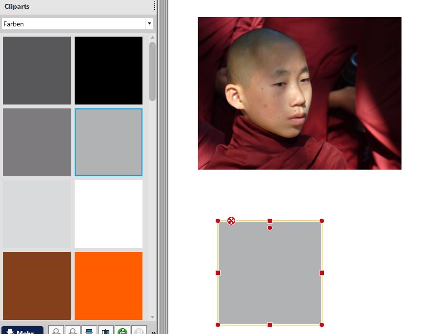 Oh je, ich habe es geahnt, wenn ich mich an Profi´s wende. @Josefa, leider kenne ich mich nicht aus, wie man einen Screenshot von der Vorschau macht. Ich schneide dies immer mit Snipping Tools aus. @Pitty, ja nach dem dunkelrot der Mönchskutte habe ich auch gesucht, jedoch nicht das richtige Rot gefunden. @Traumfänger und Bäuerin, ich muss gestehen, dass ich einen kleinen Augenfehler habe. Außerdem war ich war so vertieft, den richtigen Hintergrund zu finden, dass mir gar nicht aufgefallen ist, dass ich dadurch die Größen der Cliparts verschoben habe. Dies habe ich jetzt hoffentlich alles mittig gestellt. Wie kann ich jetzt noch die Anordnung "Myanmar der Norden" verbessern? Ich habe für jeden Buchstaben ein seperates Textfeld verwendet. Ist dies richtig so, oder gibt es noch eine andere Möglichkeit. Anbei die geänderten Versionen! Wie sieht dies nun aus? Danke für Eure Hilfe - Hilde Liebe Grüße Asiafan