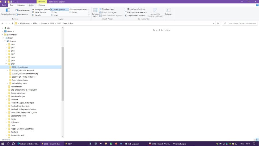 Wir laden Sie herzlich ein, die neue CEWE Community mit integriertem Forum zu entdecken und künftig zu nutzen. Das bisherige Forum, in dem Sie sich gerade befinden, steht nur noch bis Ende 2025 für neue Beiträge zur Verfügung und wird ab dem kommenden Jahr 2026 nur noch lesend zugänglich sein. Informieren und registrieren Sie sich jetzt in der neuen CEWE Community – wir freuen uns auf Sie! Probleme beim aufrufen der Foto OrdnerBetriebssystem: Windows