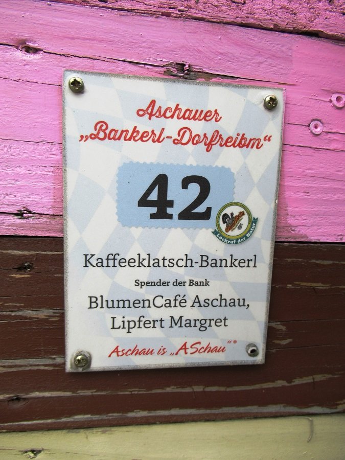 LG Traumfänger Re: Challenge 02/2021 • Mitte ZwanzigIm Bankerldorf Aschau im Chiemgau befinden sich über 470 Sitzbänke, davon 200 ganz besondere Themenbänke. Jede erzählt ihre ganz eigene Geschichte. Nahezu jedes Geschäft hat seine eigene raffinierte oder kreative Bank-Idee umgesetzt - wie z.B. ein Cafe für das Kaffeeklatsch-Bankerl.