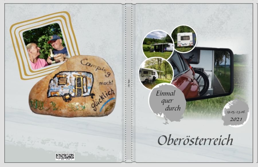 Der Anfang eines Buches ist immer schwer. Schön, dass du uns um Rat fragst, das gibt immer eine andere Sichtweise, egal ob du es annimmst oder nicht. Ich gebe Narzisse recht, es ist wohl etwas viel und doch zu wenig Österreich. Die Rückseite ist witzig, aber zu viel "Glück". Die Aufschrift auf dem Stein sagt doch schon alles, wozu dann nochmal der untere Schriftzug. Mir sind es auch zu viele Masken und Cliparts noch Rahmen usw.. Ich weiß nicht, wohion ich schauen soll. Ist das Foto vom Stein so? Der Stein erscheint mir vorne abgeschnitten, vielleicht gibt das original ja noch mehr her. Der gelbe Hintergrund passt für mich nicht so ganz zum Stein. Die Vorderseite: Da habe ich auch überlegt, was die beiden goldenen Dinger sind ich kann es nicht erkennen. Ich würde bei einem Spruch bleiben, entweder "einmal quer durch Oberösterreich" oder "100 % Oberösterreich". So klingt es wie "einmal quer durch 100 % Oberösterreich" und das passt nicht so ganz. Für mich fehlt da ganz viel Österreich - weder ein typisches Foto noch die Farbe, die zum Land passt, das könnte ja überall sein. Warum nicht ein schönes Foto der Donau oder eine Stadtansicht von Linz? Oder auch euer Camper in der Landschaft, wenn es ein Campingurlaub war. Was mir außerdem auffällt, ist der kleine rote Fleck hinter dem Datum. Könnte natürlich auch ein Warnzeichen von Cewe sein, dann sieht man es ja später nicht. So, dann bin ich mal gespannt, was am Ende daraus wird. Liebe grüße Monika