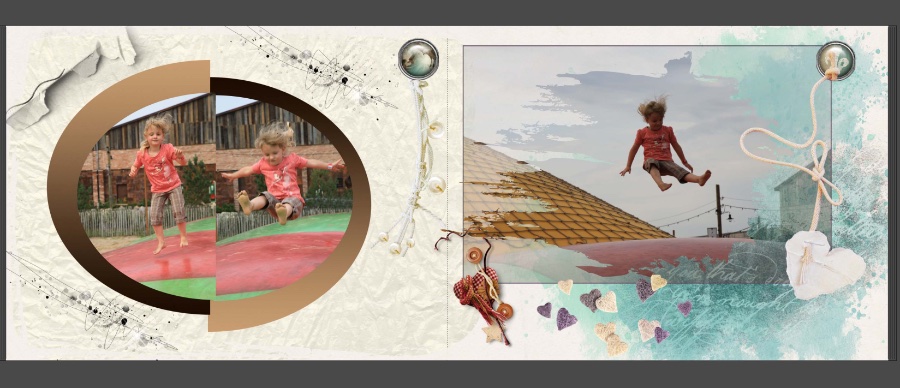 ich arbeite immer noch an meinem Fotobuch im Scrapbook Stil. Ich bin mit den zwei Seiten noch nicht so zufrieden und brauche mal eure Meinung dazu. Bei der ersten Doppelseite habe ich diese schwarzen Rahmen Obj. 128354 gewählt. Bei dem schräg gestellten Objekt (Auto mit meiner Tochter) gefällt mir nicht dass die untere Ecke in dem anderen Rahmen rein läuft. Krieg ich die irgendwie weg? Oder gibt es ein Clipart wie Obj. 129154 aber der Strich dünner? Dann könnte ich ja nur drei Ecken um das Bild legen. Ich hoffe Ihr versteht was ich meine und mir es vorstelle. Oder habt ihr eine ganz andere Idee? Bei der zweiten Doppelseite fehlt mir noch irgend etwas, sagt mein Bauch, aber ich kann nicht beschreiben was mir fehlt. Sagt mir mal bitte eure Meinung. Liebe Grüße Isabel Re: Gestaltung Fotobuch im Scrapbook StyleZur zweiten Seite: