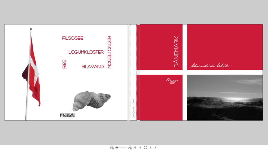 Dänemark ist der Titel und das sollte auf dem Deckblatt auch deutlich erkennbar sein. Mir ist die Schrift zu klein, zu sehr auf die Seite gerückt und die senkrechte Stellung, hm naja, ist auch nicht so meins. Auch die beiden Fotos sind nicht so prickelnd, wobei das erste mir noch besser gefällt. Vielleicht hast du ja noch ein geeigneteres Bild, das nicht so duster ist oder evtl. doch nicht schwarzweiß. Außerdem würde ich dem Bild auch mehr Raum geben und es dadurch mehr in den Blickpunkt rücken, d.h. einfach etwas größer machen und nicht exakt dem rechten unteren Feld anpassen. Ein Rahmen würde das Foto auch besser abgrenzen. Alternativ: Die Flagge über die Titelseite auf die Rückseite ziehen, um die Proportionen beizubehalten und den Titel in den weißen Balken setzen Ich habe mal etwas rumgespielt, vielleicht kannst du mit meinen Ideen ja was anfangen. @spica: Danke für die originelle Idee mit dem Kreuzworträtsel Liebe Grüße