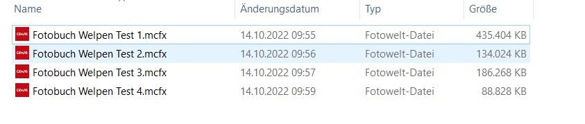 Ich habe ein Fotobuch -in der 7.3 Version -problemlos geöffnet und dann unter Fotobuch Welpen Test 1 gespeichert.Anschließend ein paar beliebige Fotos gelöscht und unter Fotobuch Welpen Test 2 gespeichert.Danach nochmals ein paar Fotos gelöscht und unter Fotobuch Welpen Test 3 gespeichert usw. Danach Programm geschlossen und anschließend versucht, diese Testbücher zu öffnen.Ich habe nicht mehr viele Fotos wiedergefunden.Sieht man sich im explorer die Dateigrößen an, wundert man sich auch nicht darüber. Wo können die beim "speichern unter" verlorengegangenen Fotos sich verstecken ? Re: windows 10 fehlende Dateien bei Laden eines ProjektsFotofan100 hat geschrieben: