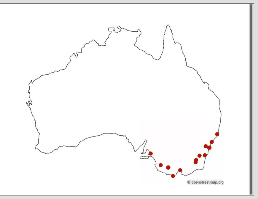 Ich habe dafür mit zwei oben aneinander ausgerichteten Textfeldern gearbeitet. Farbige Zahl und Text sind linksbündig ausgerichtet und mit Tabulatortaste voneinander getrennt. Pünktchen und Seitenzahl sind rechtsbündig ausgerichtet. So ist der Abstand zwischen Pünktchen und Seitenzahl immer gleich. Und ein Miniunterschied im Abstand zum letzten Buchstaben fällt weniger auf. Die Abstände zwischen den einzelnen Zeilen würde ich verringern. Ich habe hier einfach mit einem größeren Zeilenabstand gearbeitet. Und die Zahl zur Kartenidentifikation würde ich in Gestaltung und Farbe so anpassen, wie Du sie jeweils auf der Karte vermerkst. Du hast ja sicher einen Grund für die unterschiedlichen Farben. Dann bin ich leider über die Karte gestolpert, da die Orte irgendwie nicht da markiert sind, wo sie sich tatsächlich befinden. Ich hab da deshalb mal was vorbereitet: Und magst Du nochmals über die Bezeichnungen/Beschriftungen gehen: Naracoorte Grampians NP Kosciuszko NP bzw. Mount Kosciuszko Port Macquarie Newcastle Und eine letzte Frage: Warum ist der Rahmen beim Camper so anders als bei den anderen Fotos? Liebe Grüße