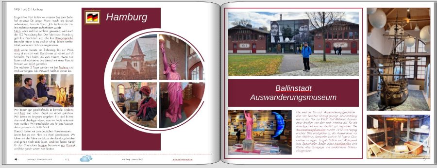Im Moment tendiere ich bei der Schriftart zu dem Vorschlag vom @Traumfänger mit den unterschiedlichen Schriften und von @Wulle mit der Überschrift von Europa in den Orient. @Basilikum, was die beiden Schriften anbelangt. Dies finde ich sehr interessant, nur passt es m. nicht so auf die Cliparts.Das FB werde ich mir auf jeden Fall noch anschauen. Die Orte ab dem Suez Kanal werde ich dann wohl mit der orientalischen Schrift beschriften. Mal sehen, wie es aussieht. Wegen dem Cover melde ich mich bestimmt noch mal. Ob dann 1 oder 2 Fotos rund oder eckig werde ich später mal entscheiden. Auch die Idee mit den halbrunden ist spannend. Da muss aber dann auch der Ausschnitt des Fotos passen. @Wulle, Hamburg ist für uns mehr Familientreffen, da mein Sohn dort wohnt. Dieses mal haben wir uns auf das Auswanderungsmuseum konzentriert. Kann ich nur empfehlen. Ich stelle jetzt trotzdem mal die Seite von Hamburg ein. Liebe Grüße Asiafan