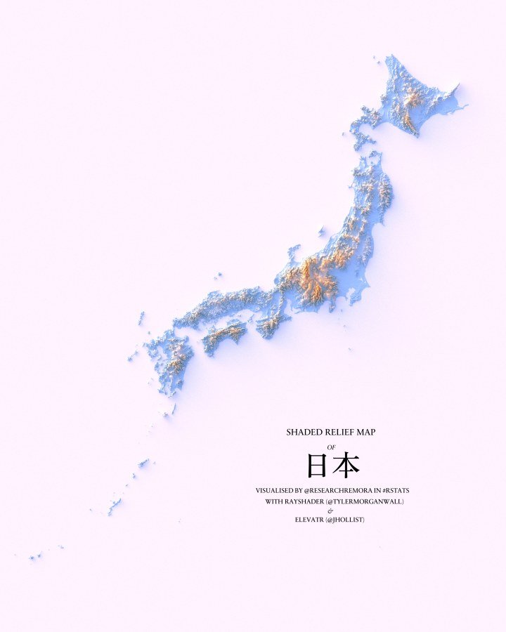 Ich verwende gerne Relief-Karten, für Japan mit den südlichen Inseln, habe ich folgende gefunden.