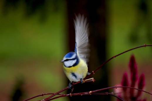 Den Flügel zum Gruß erhoben sagt die Meise Hallo.Und auch von mir ein herzliches Hallo an alle....