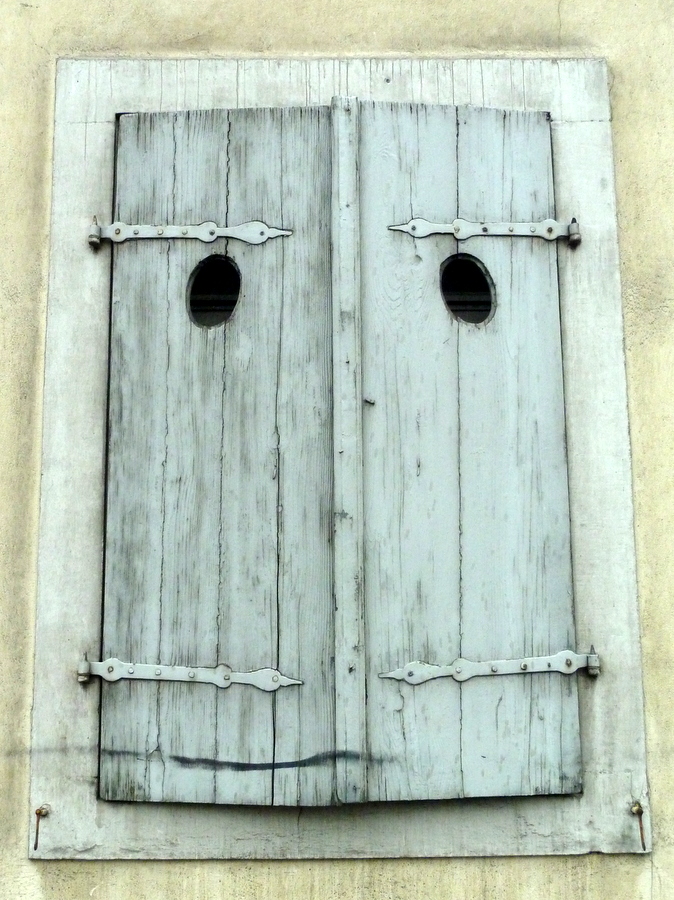 Fensterladen mit Gesicht in Ludwigsburg Lumix DMC-TZ10 - 35mm - F/4 - 1/160sec - ISO 400