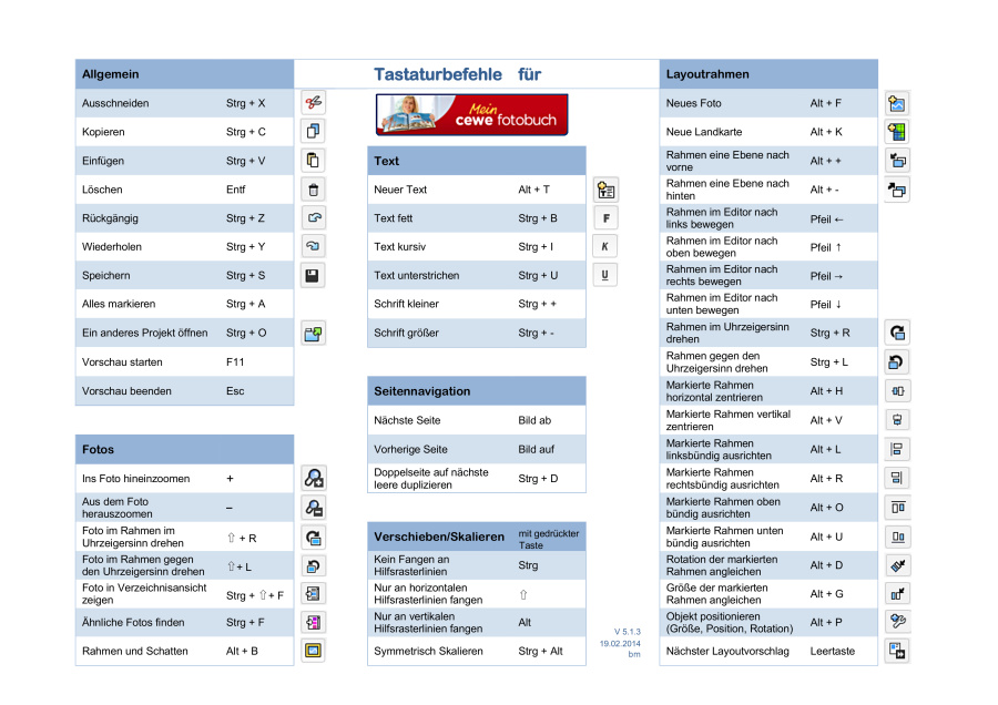 Die Tastenkürzel können in der Mein CEWE FOTOBUCH- oder FOTOWELT-Software aller Handelspartner genutzt werden.