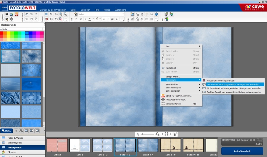 Wir laden Sie herzlich ein, die neue CEWE Community mit integriertem Forum zu entdecken und künftig zu nutzen. Das bisherige Forum, in dem Sie sich gerade befinden, steht nur noch bis Ende 2025 für neue Beiträge zur Verfügung und wird ab dem kommenden Jahr 2026 nur noch lesend zugänglich sein. Informieren und registrieren Sie sich jetzt in der neuen CEWE Community – wir freuen uns auf Sie! Hintergrund ausrichten (ab Version 6.0.3)Einige CEWE-Hintergründe haben eine ungleichmäßige Struktur. Das heißt, wichtige Design-Elemente sind schwerpunktmäßig links oder rechts angeordnet.