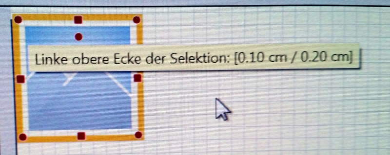 Ich habe das wohl nicht genau genug formuliert, sorry, Deutsch ist nicht meine Muttersprache. Nochmal von vorne. Ich gehe von einem Bild aus mit geraden Maßen. Die Anzeige spricht auch immer von dem gleichen Punkt zB. "Linke obere Ecke der Selektion". (klar ist die Reihenfolge umgekehrt... hoffentlich habe ich die Nummern nicht vermasselt - dass die Anzeige falsch anzeigt, kann man trotzdem sehen...) Bild ist 8x8 mm, ist platziert auf 0.10/0.05 (Bild 1), ist gut zu sehen. Zu Anfang zeigt der Anfasser auch diese Koordinaten (Bild 2). Und das ist das einzige Mal, wo er richtig anzeigt, hast du das Bild einmal bewegt, stimmt die Anzeige mit der Position praktisch nie mehr überein. Mit mehrmaligem hin-und-herwackeln kann man es evtl. einmal wieder korrekt haben, aber eher nicht. Nach paarmal hin und zurück Bewegen ist das Bild auf 0.10/0.10, aber die Anzeige zeigt falsch mit 0.10/0.05 an (Bild 3). Du spazierst nach unten, Bild ist auf 0.10/0.20, aber Anzeige zeigt 0.10/0.15 an (Bild 4) Du steppst jetzt zurück nach oben, Bild wandert auch zu 0.10/0.15 nach oben, Anzeige geht aber weiter aufwärts auf 0.10/0.20! (Bild 5)Bilder 6 und 7 zeigen ebenfalls falsche Anzeigen: Bild ist auf 0.10/0.05 und Anzeige zeigt 0.10/0.10, bzw. Bild ist auf 0.1/0.1 und Anzeige zeigt 0.1/0.15. Beobachte es mit einem 1-mm-raster und Pfeiltasten, du wirst merken, dass nach herunterfahren und dann beim ersten zurück-hoch-fahren zeigt die Anzeige statt dem korrekten wieder-schrumpfen weiter-anwachsen an, und die Position stimmt mit der Anzeige nicht überein. Wie gesagt, ein halber millimeter hin oder her ist für manche nicht wichtig. Bei einem Spiegel mit mehreren Bildern kann aber ein halber Millimeter schon sehr störend sein. Und das wichtigste: Die Anzeige hat korrekte Daten zu zeigen, sonst ist sie nicht nur wertlos, aber auch schädlich. Ich hoffe, ich konnte das klar erzählen, wenn nicht, sorry, aber spielt es nach und ihr werdet es verstehen! LG Old Nat, der Dino