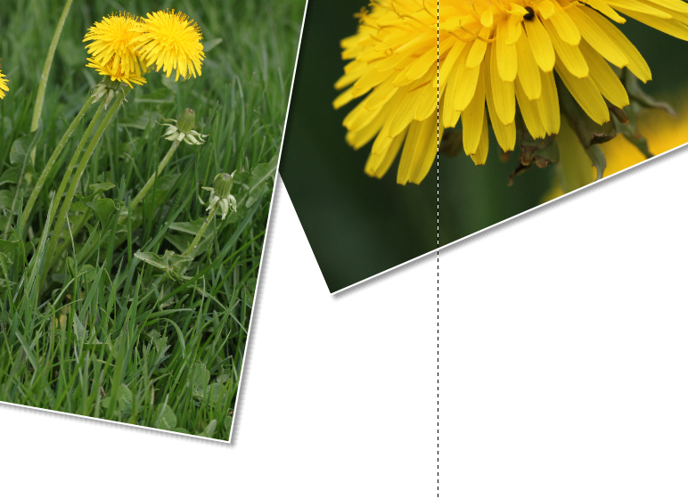 Wenn - wie in dem hier von farbspectrum gezeigten Beispiel - sich zwei Bilder mit Schatten überlappen, dann kann natürlicherweise der Schatten des oberen Bildes nicht durchgängig gleich breit sein. Dort, wo er auf das darunterliegende Foto trifft, müsste er schmaler sein. Auch müsste der Schatten des unten liegenden Fotos schmaler sein, als der des oben liegenden. Das fällt (mir) bei großen Schatten auf. In Überlappungsfall würde ich wesentlich schmalere Schatten wählen, dann merkt man es nicht (so sehr). Lieber Gruß, pitty