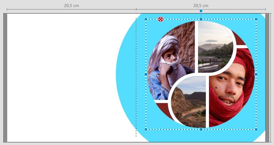 Ich habe wie folgt gearbeitet: --> Clipart Kreis als Basis und Hintergrund für die beiden sichtbaren einfarbigen Zipfel auf der Seite platziert --> 4 Fotoplatzhalter angelegt, wie im Screenshot dargestellt. Die Berechnung dazu: Die Quadrate mit Halbkreis erhalten das halbe Seitenmaß vom Kreisclipart, die Rechtecke mit Innenrundung erhalten die Breite der Quadrate und eine 1,5fache Länge von ihrer eigenen Breite. Die Rundungen lege ich generell mit 500 mm; das passt bei jeglicher Fotogröße (auch seitenfüllend), um eine vollständige Rundung zu erhalten. --> Alle 4 Fotoplatzhalter erhalten einen Rahmen Mitte, in meinem Beispiel 3mm. So kann ich die Fotos direkt aneinander andocken und die Rahmen überlappen sich gleichmäßig. --> Die 4 Fotoplatzhalter befülle ich und richte sie mit den jeweils angegebenen Tastenkombis (ALT+OV usw.) auf dem Kreis aus. Dazu markiere ich jeweils zuerst den Kreis, halte STRG gedrückt und markiere dann den jeweiligen Fotoplatzhalter. (Abb. li.) --> Die von Sylke gezeigte versetzte Optik erhalte ich, indem ich die Fotos anschließend verschiebe. Für mein Beispiel habe ich bei gedrückter STRG-Taste 2 und 4 gemeinsam markiert mit der Pfeiltaste 10x nach rechts sowie 1 und 3 gemeinsam markiert mit der Pfeiltaste 10x nach links geklickt. (Abb. re.) Die Schnecke im Yin und Yang Design geht grundsätzlich im Ansatz gleich, nur die Ausrichtung der Fotos und Rundungen ist anders. (Abb. li) Für den Basiskreis nehme ich hier jedoch ein vollständig gerundetes Foto statt des Cliparts, um evtl. Farbabweichungen beim Druck zu vermeiden, die teilweise zwischen Fotos und Cliparts vorkommen. Bei Yin Yang lasse ich auch die Rahmen und die seitwärtigen Verschiebungen weg, sodass die einzelnen Fotos am Ende wie nur 2 aussehen. Das Kreisfoto im Hintergrund sowie die Fotos 3 und 4 werden alle mit einem identischen einfarbigen Foto bestückt. Den Zipfel unten rechts decke ich mit einem zusätzlichen Clipart ab, dessen Farbe ich aus dem anliegenden Bereich des Fotos 2 picke. Fotoplatzhalter 1 und 2 bestücke ich jeweils mit dem gleichen Foto und richte diese so aus, dass sie passen und wie ein Foto aussehen. Foto 2 erhält außerdem einen Verlauf nach unten, um den Übergang zum darunterliegenden Clipart weicher zu gestalten. (Abb re.) Liebe Grüße