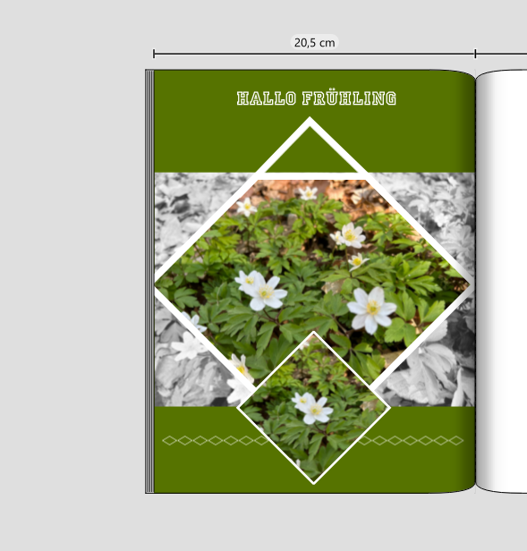 Für diese CEWE FOTOBUCH Seite habe ich mein Bild mit mehreren Cliparts aus der Kategorie „Formen“ verziert.
