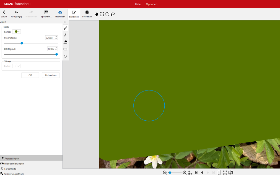 Das Viereck mit weißem Farbrand kann über Dekorieren > Eckgrößen und -form + Farbrand eingestellt werden.
