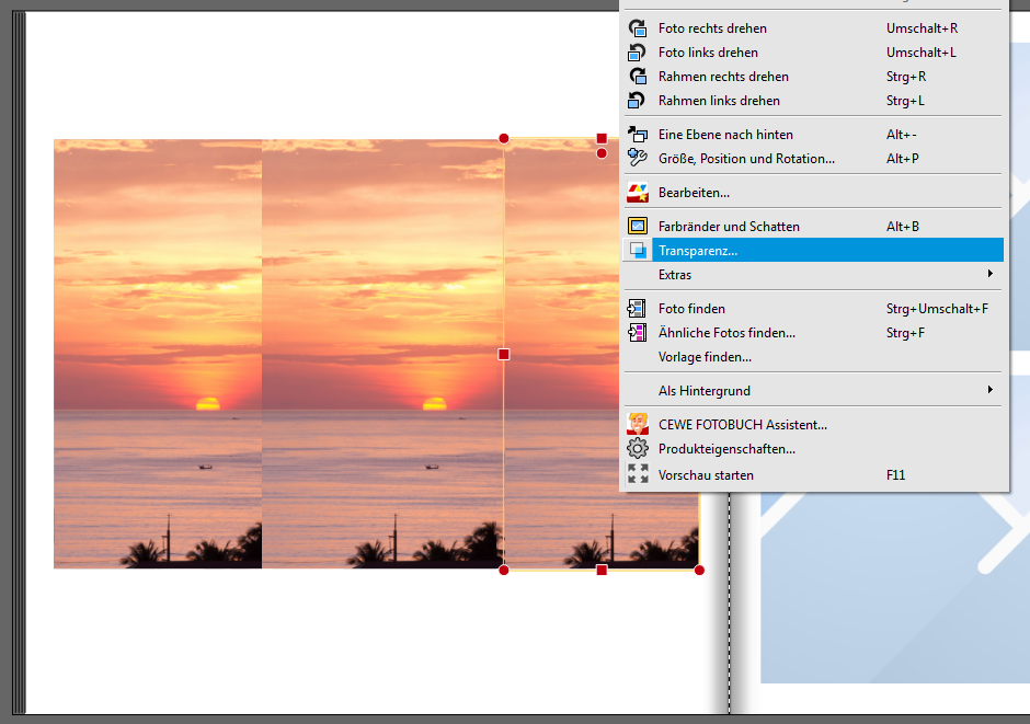 Ich kopiere nun das Foto, ändere die Größe und kopiere es dann noch 2x (Leere Platzhalter nützen bei Verwendung der CEWE – Zuschnittfunktion nicht).