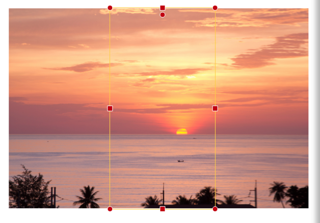 Der Zuschnitt erfolgt nun mehr oder weniger nach Augenmaß, der Layoutrahmen passt sich entsprechend an. Im Beispiel ist das Foto nun 24,08 x 11,74 cm groß.