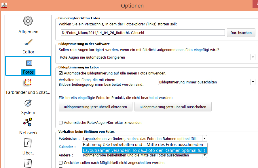 Beim Foto die Ausrichtung ändern und ins Fotobuch einfügen.