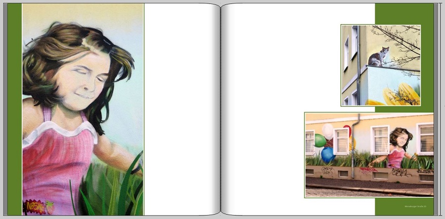 zwischenzeitlich bin ich fast fertig mit meinem Graffiti-Buch und mit meiner grundsätzlichen Gestaltung auch zufrieden. An einer Doppelseite verzweifle ich jedoch schon seit Tagen (Wochen). Hier hätte ich gern ein paar Meinungen, wie die Ideen auf Euch wirken, welche Variante Ihr bevorzugt bzw. welche anderen Gestaltungsimpulse Ihr vielleicht habt. Eigentlich gefällt mir die Ballon-Idee, die ich mit den Cliparts aufgreifen wollte. Runde Cliparts hatte ich schnell verworfen, das gefiel mir gar nicht. Deshalb habe ich die eckige Variante gewählt. Aber egal ob ich die "Ballons" mehrfarbig oder in ähnlichen Farbtönen gestalte, sanfte oder knallige Farbtöne wähle, mit oder ohne feinen Rahmen..., irgendwie ist es mir immer zuviel (zu unruhig) oder zu lahm in der Gesamtoptik. Deswegen habe ich noch eine ganz schlichte Variante mit grünen Cliparts als Seitenstreifen und ohne Ballons probiert und finde die auch ganz nett. Aber mein Kopf mag sich einfach nicht von der Ballon-Idee trennen... D:-? Deshalb dachte ich, unverliebte Blicke können das neutraler betrachten. D:wink: