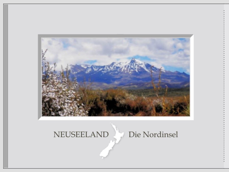 Frage zu "Aotearoa" und der entsprechenden Übersetzung: Seid Ihr auf der Reise sehr viel mit der Maori-Kultur in Kontakt gekommen? Wenn eher nein, würde ich beides gar nicht aufs Cover packen, sondern mich dort für ein schlichtes "Neuseeland - Die Nordinsel" entscheiden. Ich hatte das gestern mal ganz simpel entsprechend Deiner bisherigen Gestaltung entworfen. Neuseeland gibt es bei CEWE auch als Clipart. Damit lässt sich vielleicht auch einfacher gestalten. Und die Farbe der Schrift würde ich aus dem dunkelgrünen Bereich der Landschaft picken. EDIT: Oder wenn Du das Thema Polaroids wieder aufgreifen möchtest: Liebe Grüße