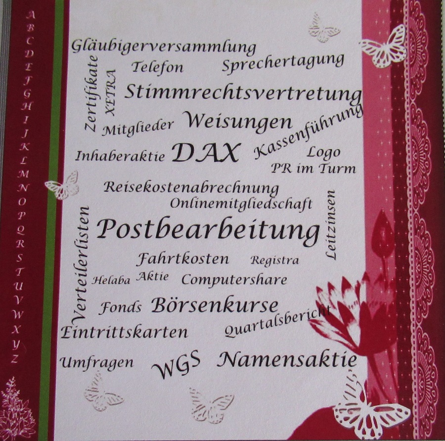 Das angehängte Beispiel ist auch nur abfotografiert, da ich dieses Buch verschenkt und auch nicht mehr auf dem PC gespeichert habe. Es war ein Abschiedsbuch an meine Kollegin mit Begriffen aus ihrem Aufgabenbereich. Liebe Grüße Albine