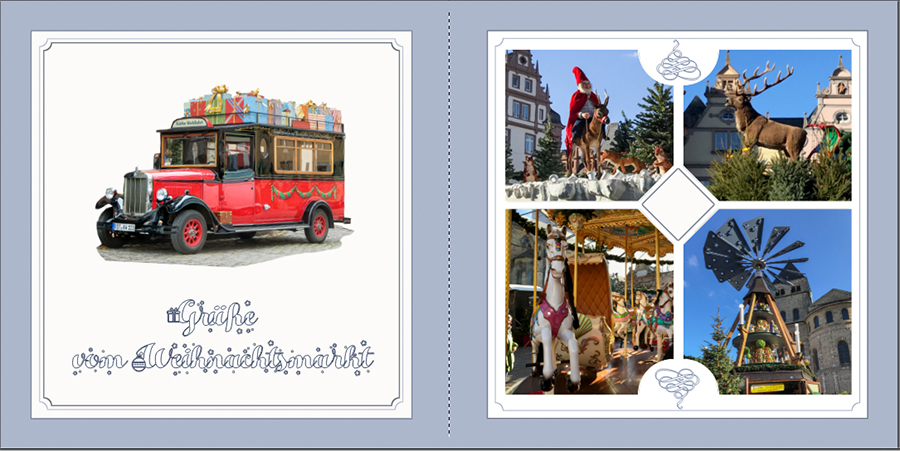 Viele, viele Cliparts und zwei geformte Fotos machen einen lieben Gruß.