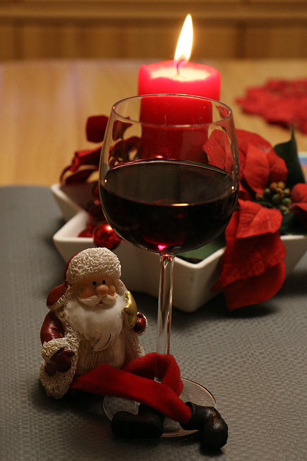 ...."und jetzt brauche ich noch etwas für die Nerven und für einen guten Schlaf - hast Du ein Glas Rotwein für mich?" Na ja, die Menge im Weinglas war für meinen kleinen Klausi dann vielleicht doch etwas zu üppig bemessen....