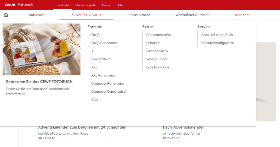 Die neue CEWE FOTOWELT 8.1 steht in den Startlöchern und bringt natürlich auch wieder einige Neuheiten und Änderungen mit sich. Was gibt es Neues in der Software zu entdecken? Das Megamenü Wir haben direkt zu Beginn unsere Produktnavigation für euch erneuert. Das neue Megamenü überzeugt direkt beim ersten Blick mit erweiterten Informationen und mehr Struktur. Bewegtbilder bei verschiedenen Auswahlmöglichkeiten Die Papierauswahl sowie die Panoramaseite auf den Übersichtsseiten werden euch für eine bessere Darstellung und zur Erkennung der Papierqualitäten nun per Mouseover als Bewegtbild dargestellt. Der Foto-Adventskalender mit Türchenbildern und als Poster-Collage wird in der Übersicht ebenfalls als Video dargestellt. Außerdem findet ihr die Erinnerungstasche im Digitaldruck unter "Extra" ebenfalls mit einem kleinen Video zur Erläuterung. Designvorlagen Unsere Buchvorlagen und Stile findet ihr im Editor nun zusammengefasst unter Designvorlagen. Diese könnt ihr im Assistenten nun auch getrennt für Einbände und Innenseiten anwenden.