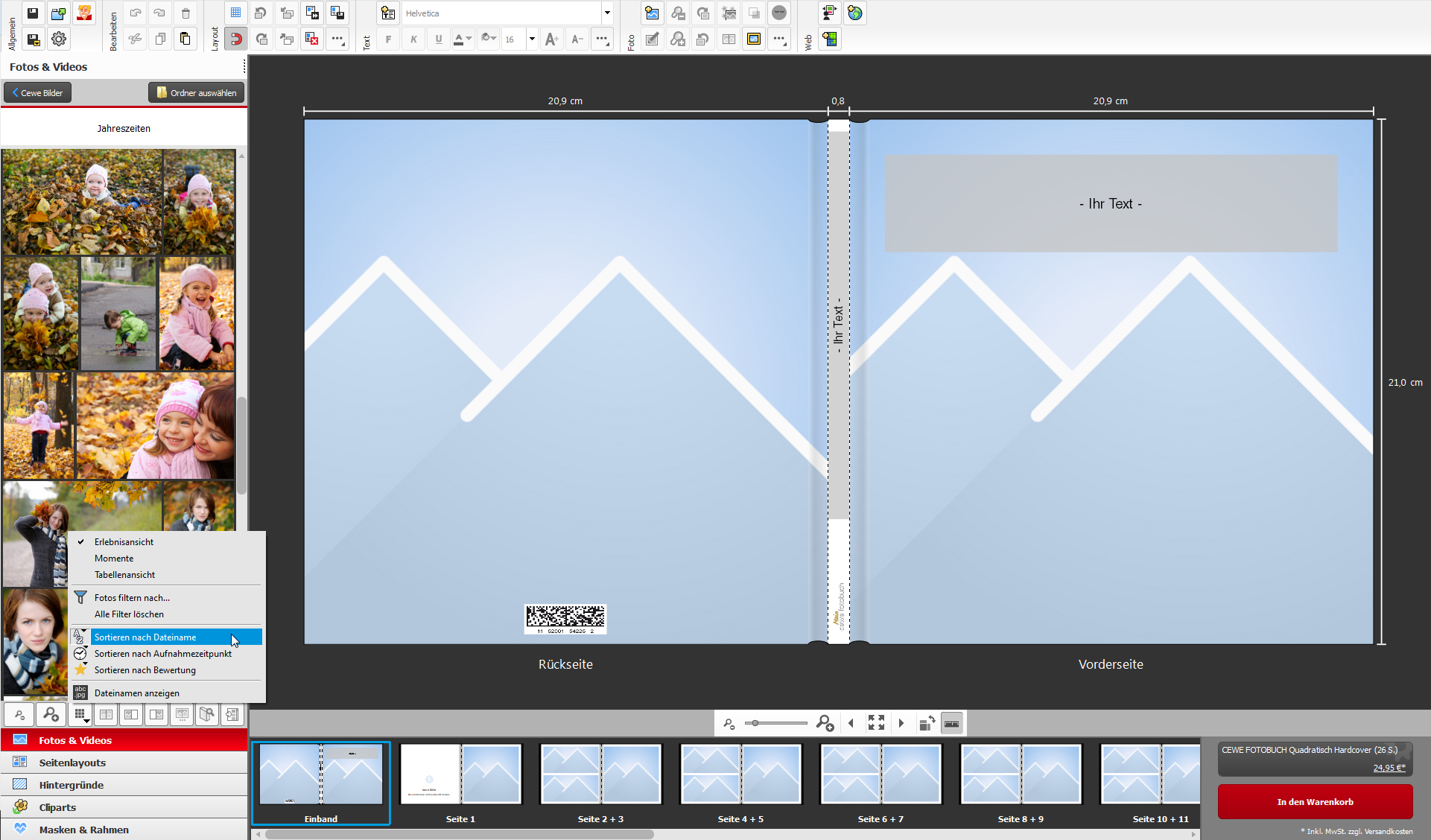 ich muss mich für das Missverständnis entschuldigen. Sie schrieben oben, dass Sie chronologisch sortierte Fotoprodukte erstellen und so habe ich alle Programmbereiche getestet, die unterschiedliche Sortierarten anbieten. Natürlich habe ich alle Arten getestet, mich in diesem Beitrag jedoch auf die Sortierung nach Aufnahmedatum konzentriert. Bad Reputation hat es gut recherchiert. Die Sortierung nach Dateinamen greift über den Assistenten nicht. Dieser Fehler ist bekannt und liegt der Entwicklung vor. Vielen Dank für Ihre Unterstützung und Ihre netten Worte. In unserer Software führen viele Wege zum Ziel und so können Sie die Möglichkeiten einer Automatisierung nutzen, ohne den Assistenten aufzurufen. Sortieren Sie dazu einfach die Bilder im Bearbeitungsbereich, wählen Sie alle aus und ziehen Sie diese in das CEWE FOTOBUCH. Diese Methode bringt Vorteile, wenn Sie z.B. nur Ihre bevorzugten Layouts verwenden möchten. Sylke Re: Foto-sortierung mit AssistentRotuma hat geschrieben: Dino - Hast du auch getestet, ob die Reihenfolge mit dem Assistenten in Version 6.1.5 bei dir richtig dargestellt wurde? Bis zu den Vor-Versionen hatte es ja funktioniert. Mit einem Fake-Exif-Datum habe ich es allerdings nicht versucht, ist ja doch sehr aufwendig. Da besser gleich ohne Assistent arbeiten und die Fotos nach Namen reinziehen.